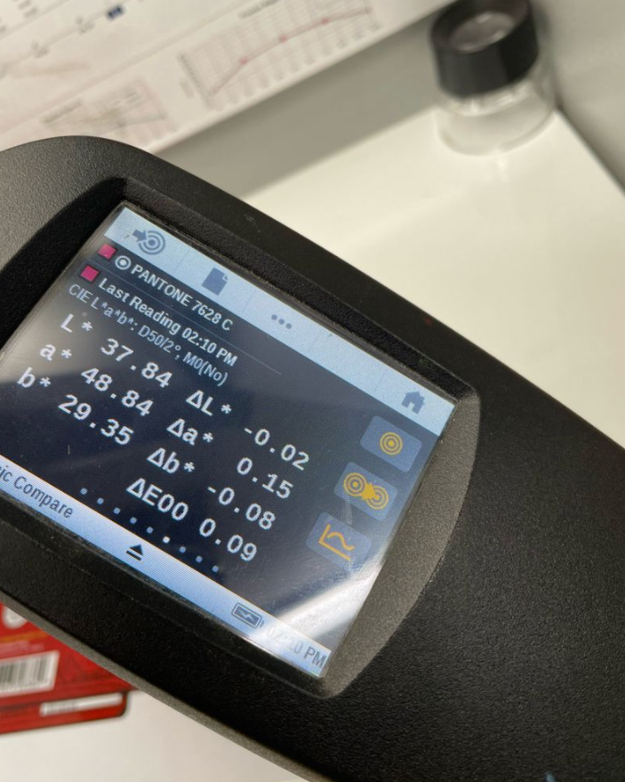 Using X-Rite Ink formulation software and X-Rite Spectrodensitometers, we are able to consistently keep your Brand's colors in tight tolerance from beginning of run to the end of run, each and every time.